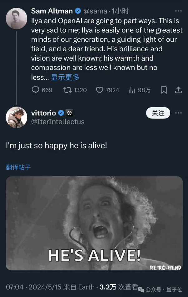 在谷歌 I/O 开发者大会前贴脸输出GPT新功能,等谷歌发布会结束立马又带来了重磅消息,沉寂半年之久的OpenAI首席科学家Ilya,真的如众人猜测那样官宣离职。