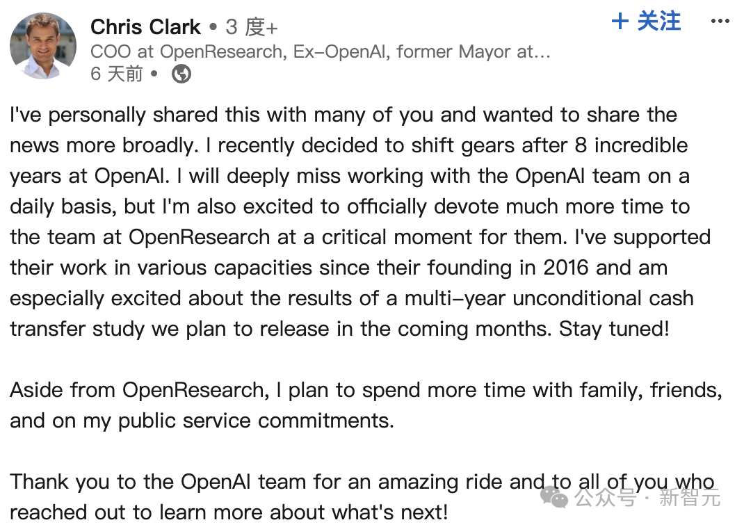 而Clark在OpenAI工作已经超过8年,他自2016年起担任公司首位首席运营官。