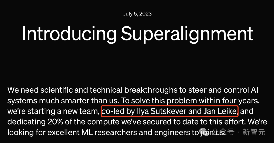 这一团队成立的目标是,试图用20%算力,在未来4年解决「超级智能对齐问题」。