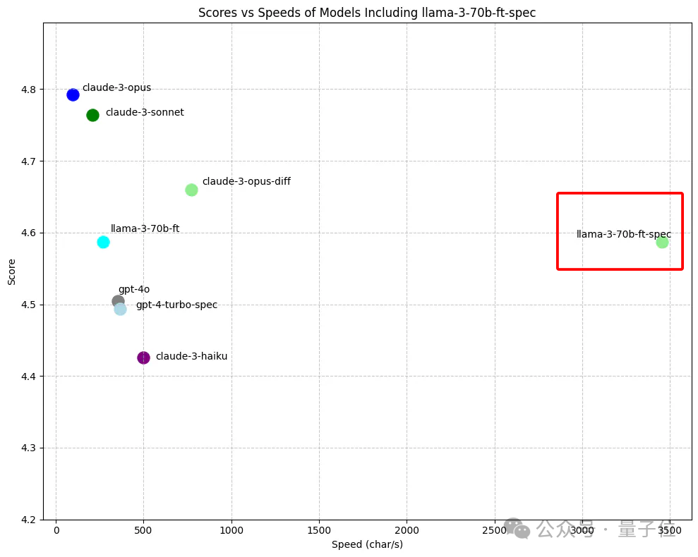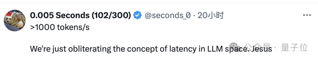 要知道在以快著称的推理加速框架Groq上,70B Llama3的推理速度也不过每秒300多token。