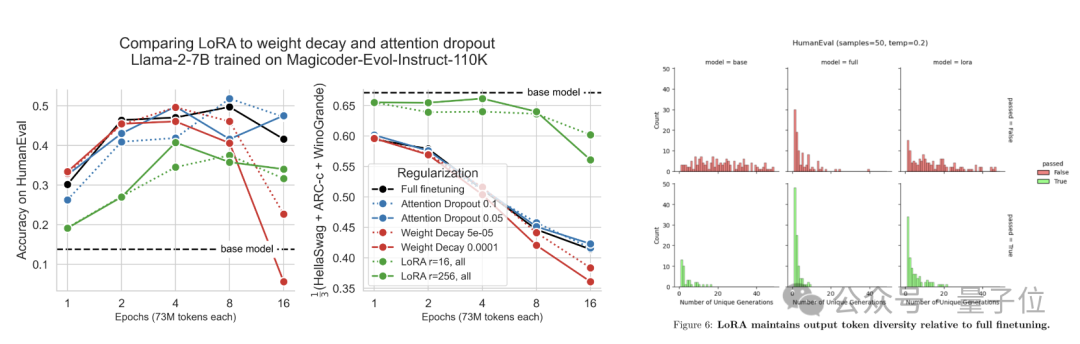 不过,作者也发现,LoRA虽然学得少,但是“记忆力”却更好,遗忘现象要比全量微调少得多。