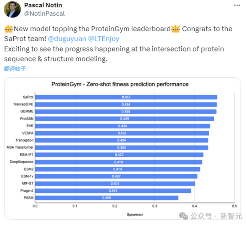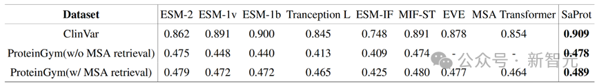 【新智元导读】Saprot在proteingym蛋白质突变预测任务公开基准榜(由牛津大学计算机与哈佛医学院设立)排名第一。相比,其他排名靠前的算法都是混合模型,专门针对突变任务设计,而Saprot不仅是单模型,而且是通用模型。