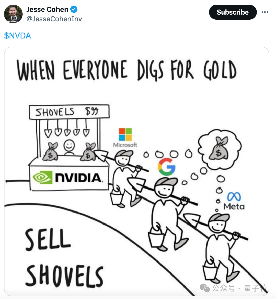 显然,这场“AI淘金热”中,“淘金人”还未靠AI实现大幅盈利,“卖铲人”英伟达已赚得盆满钵满了。