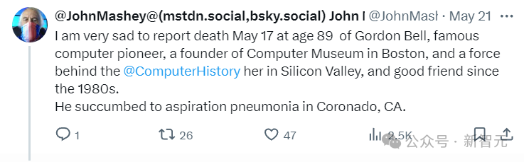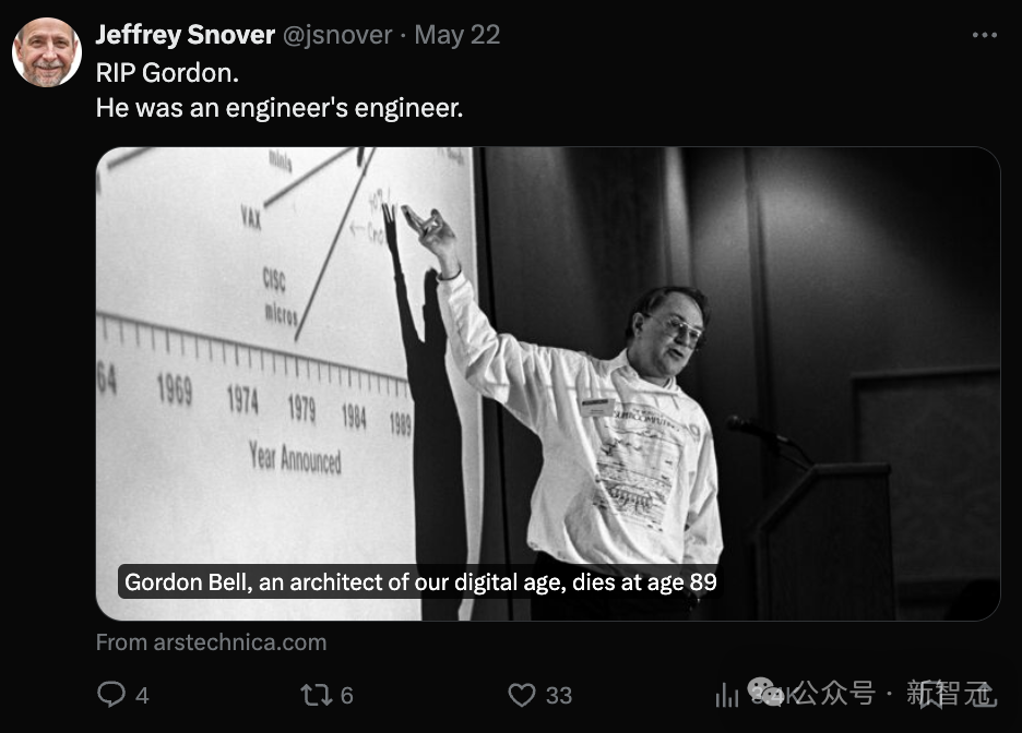 在1985年接受《计算机世界》采访时,Bell解释了他在技术上屡获成功的秘诀。「任何技术的诀窍都在于知道什么时候跟上潮流,什么时候推动变革,然后知道什么时候它已经死了,什么时候该退出。」Bell就是这样的人,这位计算机先驱总是向前看十步并构建那个版本的世界。https://arstechnica.com/gadgets/2024/05/gordon-bell-an-architect-of-our-digital-age-dies-at-age-89/https://www.nytimes.com/2024/05/21/technology/c-gordon-bell-dead.htmlhttps://gizmodo.com/gordon-bell-obituary-computer-legend-internet-microsoft-1851492263