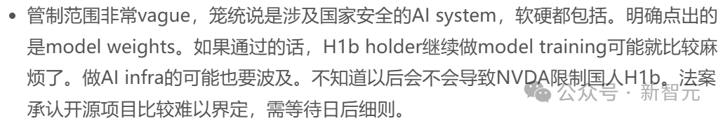 据一亩三分地网友「delta42」推测,如果法案通过,持有H-1B签证的中国人,或许就需要特殊许可,才能做AI/ML的相关工作了。