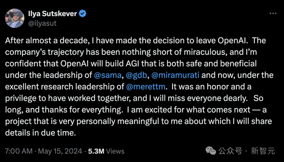辞职不久的Jan Leike已经定下了去处,但GPT-4o发布后最先出走的Ilya Sutskever目前还没有消息。作为OpenAI的联合创始人、AI圈的顶流科学家,Ilya的辞职引发了纽约时报、CNN、时代杂志等多家媒体的跟踪报道。在当初宣布辞职消息的推文中,Ilya透露自己找到了下一步心仪的项目,他形容为「对我个人非常有意义」,并将在适当的时候分享。外媒The Information,最近也撰文一篇,对Ilya的去处展开了一番大猜测。记者猜道,Ilya或许会加入OpenAI的直接竞争对手公司,比如Anthropic,或者马斯克的xAI。当然,他也有可能会像Dario Amodei一样创办自己的公司,直接跟前雇主竞争。无论是哪种选择,他跟Sam Altman的关系,恐怕都会加剧紧张。如果Ilya选择创办自己的公司,在吸引投资方面应该不会有任何困难。比如曾向OpenAI投入巨资、让OpenAI过快发展AGI、导致Ilya担忧的那些硅谷AI投资者,Ilya是否愿意向他们筹集资金呢?风投中一向有避免投资竞争对手的规矩,这些风投家是否愿意打破规则呢?其中,红杉资本、a16z、Thrive Capital、Khosla Ventures和Founders Fund等许多公司都是OpenAI的投资者。而Thrive和Khosla,与OpenAI和Altman关系尤其密切。因此,他们不太可能会向Ilya提供资金支持。而红杉资本和a16z的态度就不确定了。虽然他们希望与Altman保持良好关系,但同时也表现出了和OpenAI竞品合作的意愿。比如上周末,马斯克xAI官宣了一轮60亿美元的融资,红杉和a16z就都有份参投。虽然许多创始人很不喜欢自己的投资者与竞争对手分享敏感信息,但非常多的投资者认为,鸡蛋不能放在一个篮子里。在如今的生成式AI浪潮下,最终胜出的玩家如今尚不明朗,在多个LLM上下注,绝不不失为一种明智的选择。而如今万众瞩目的Ilya,无疑就是通向AGI竞赛中的一匹黑马。他的最大卖点,就是他的模型可以防止AI可能引发的灾难。https://www.theinformation.com/articles/whats-next-for-openais-ilya-sutskeverhttps://x.com/janleike/status/1795497960509448617?