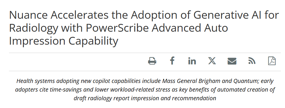 Paige只是微软在AI病理学布局的一环,微软旗下的语音识别软件公司Nuance 与PowerScribe Smart Impression在放射学报告方面所有合作。