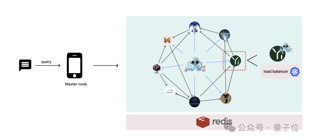 这里,P(Nω,ph|q;Nm)使用Octopus v2模型为𝑁m选择最佳的相邻工作节点并重新格式化查询为𝑞ℎ,这是重构的查询。