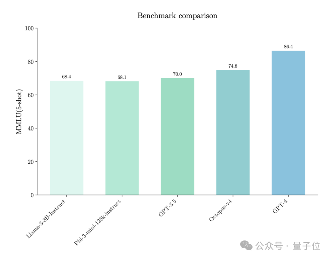 通过激活约100亿参数的模型,Octopus v4在同级别模型中实现了74.8的SOTA MMLU分数。