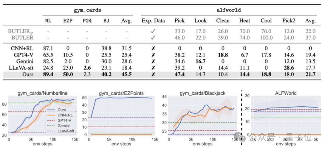 实验结果表明,直接使用强化学习微调7B的多模态模型之后,能使其在两类决策问题上的表现超过商用模型GPT-4v Gemini,同时也能超过传统的监督微调(SFT)方法。