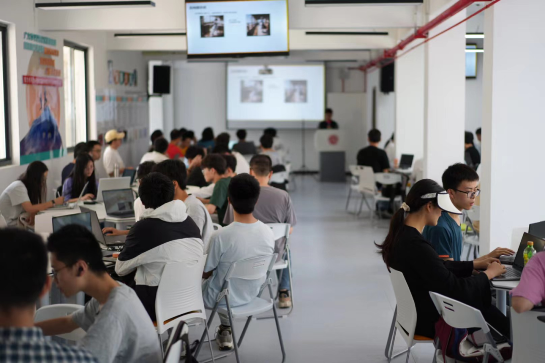 Datawhale团队成员、AIGC算法工程师卢雨畋学长向同学们介绍了Stable Diffusion大模型的前沿性,并通过实例讲述了大模型的便利性和创造性。不仅如此,学长还详细介绍了什么是Datawhale社区和加入开源社区将会带来的种种益处,并引导同学们如何在DataWhale社区学习。介绍期间,场务人员时刻准备为同学们解决可能出现的问题,并全力配合学长完成精彩的交互。
