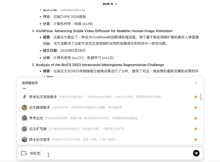 例如我们可以@一下一个名叫“arXiv论文速读/精析(计算机)”的AI智能体: