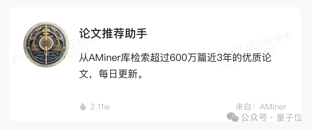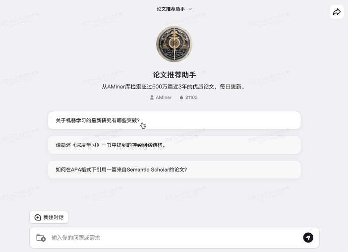 再如下面这个名叫“论文推荐助手”的AI智能体,更是可以检索清华大学AMiner数据库中,近三年超过600万篇的优质论文。