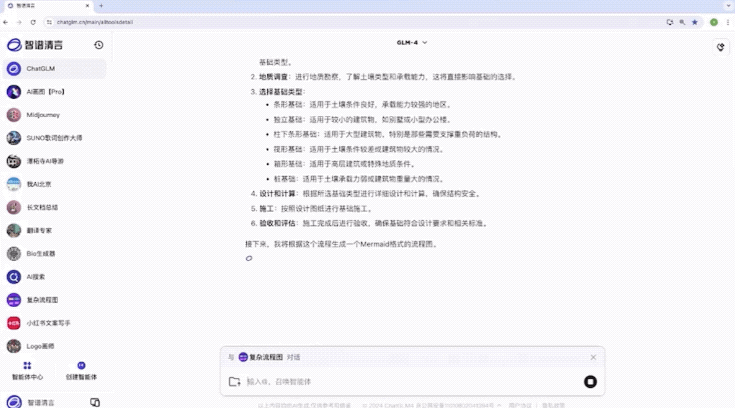 首先就是这次活动的主角之一,清流,正如刚才我们所述,它的可以让用户在GLM-4主对话框或任意一个AI智能体内,只需使用“@”功能,就可以召唤不同的专用AI智能体继续执行任务。