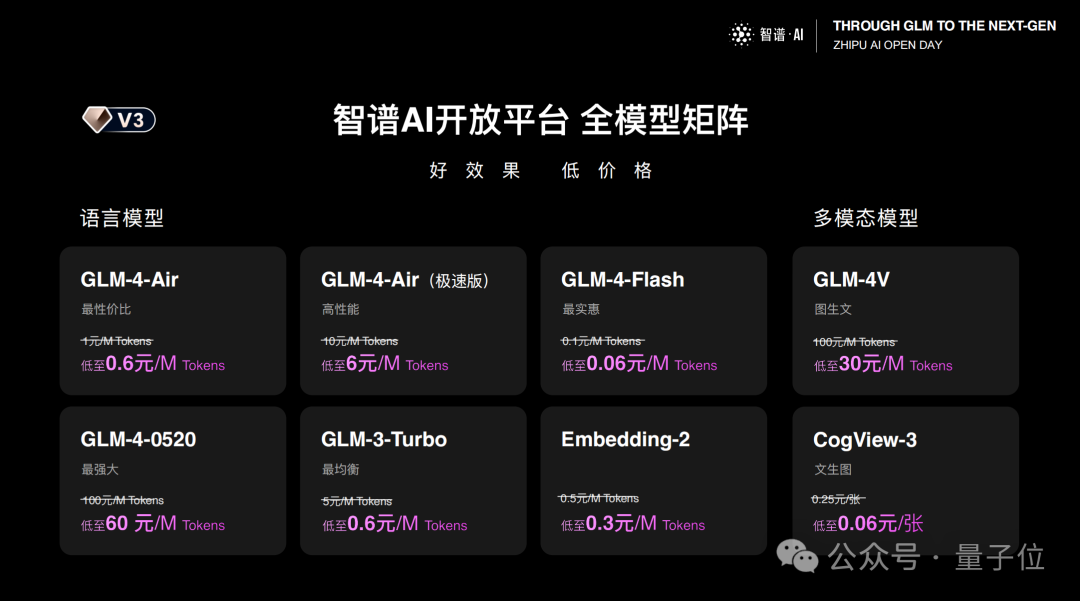 以GLM-4-Air为例,目前只需1%的价格,在性能上就可以比肩GLM-4了!