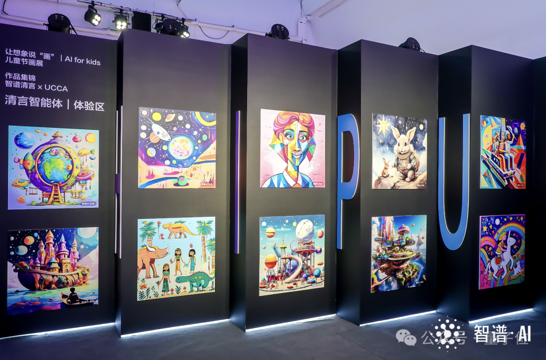其实在这场活动中,除了我们最开始提到的萌萌小朋友用AI进行了创作之外,现场还展示了众多的画作: