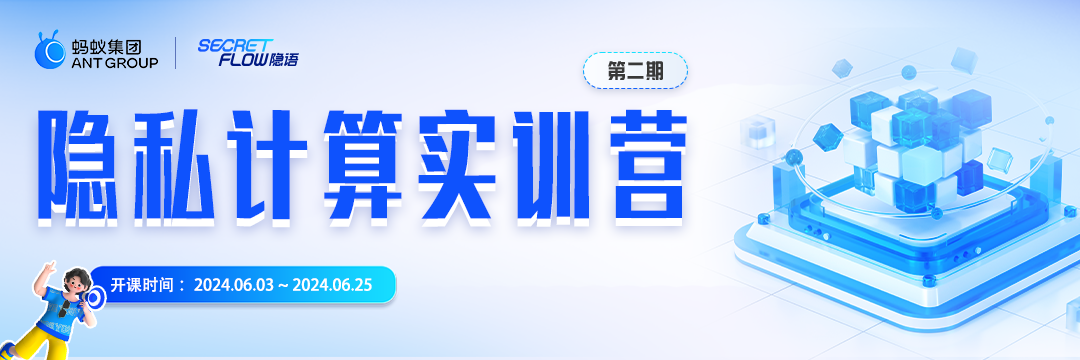 随着人工智能普及与数据流通加速,数据安全与隐私保护面临严峻挑战,与此同时,可信隐私计算技术在数据要素的发展中起到了不可忽视的关键性作用。为推动数据要素市场加速发展,蚂蚁集团隐语开源社区特别推出“隐私计算实训营”系列活动。在这里,你将与产学界顶级大咖一起,亲身体验工业级隐私计算的全流程。更有结业证书、周边礼品等福利等你来解锁!