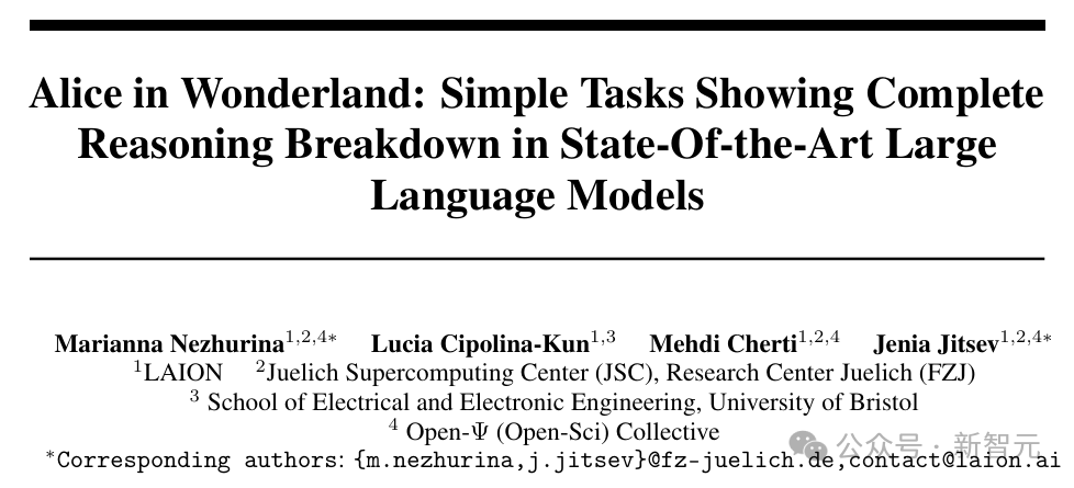 【新智元导读】在基准测试上频频屠榜的大模型们,竟然被一道简单的逻辑推理题打得全军覆没?最近,研究机构LAION的几位作者共同发表了一篇文章,以「爱丽丝梦游仙境」为启发涉及了一系列简单的推理问题,揭示了LLM基准测试的盲区。