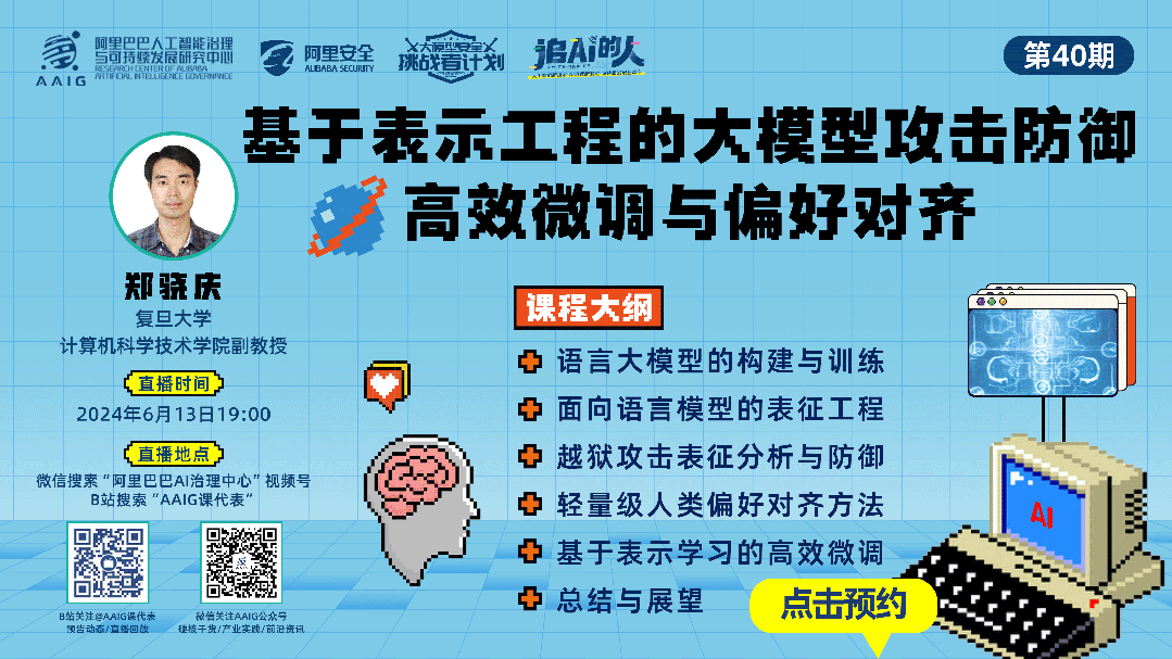 直播地点: 微信搜索“阿里巴巴AI治理中心”视频号,B站搜“AAIG课代表”。