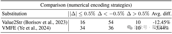 这种缺陷同样适用于表格的分类回归预测中,这类机器学习任务需要模型建立数值特征与目标之间的统计关联,因而要求模型能感知连续数值,并理解不同相对大小数值的含义。