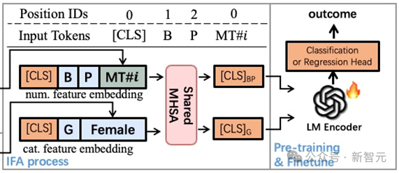 具体来说,每个特征内部存在特征名-值的文本顺序,因此IFA对单个特征内保留位置编码,经共享的多头注意力模块将信息汇总到单个[CLS]向量中,再进一步将各特征的向量传递给LM编码最终信息。