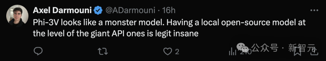 Phi-3-V依旧坚持了语言模型的「小参数」策略,参数量仅有4.2B,可以接受图像或文本提示作为输入,然后生成文本输出。