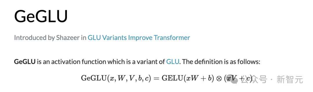 用GEGLU激活函数代替GELU