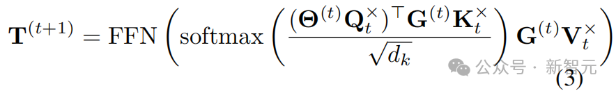 其中,Qt×,Kt× ∈ Rk×d_k, Vtx ∈ Rk×k分别是交叉注意力的键、查询和值变换。在结束这一层之前,对Gt+1不进行额外的变换。