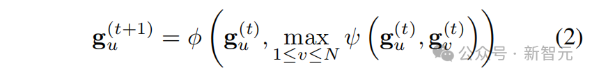 其中,ψ,ϕ : Rk × Rk → Rk分别是可学习的消息函数和更新函数,max是逐元素最大值聚合。