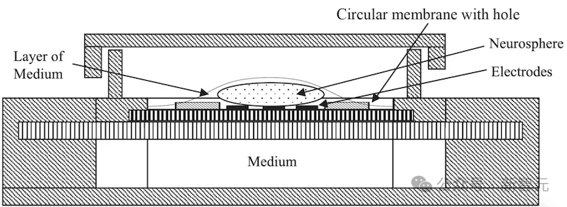 闭环微流控系统提供神经元培养基,以维持MEA上类器官的生命。