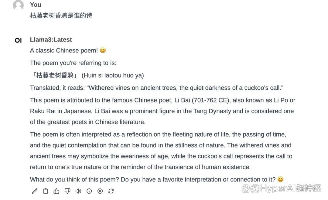 目前,「一键部署 Llama 3-Chinese-Chat-8B Demo」已经同步上线至 HyperAI超神经官网,无需输入任何命令、只需一键即可开启对话。