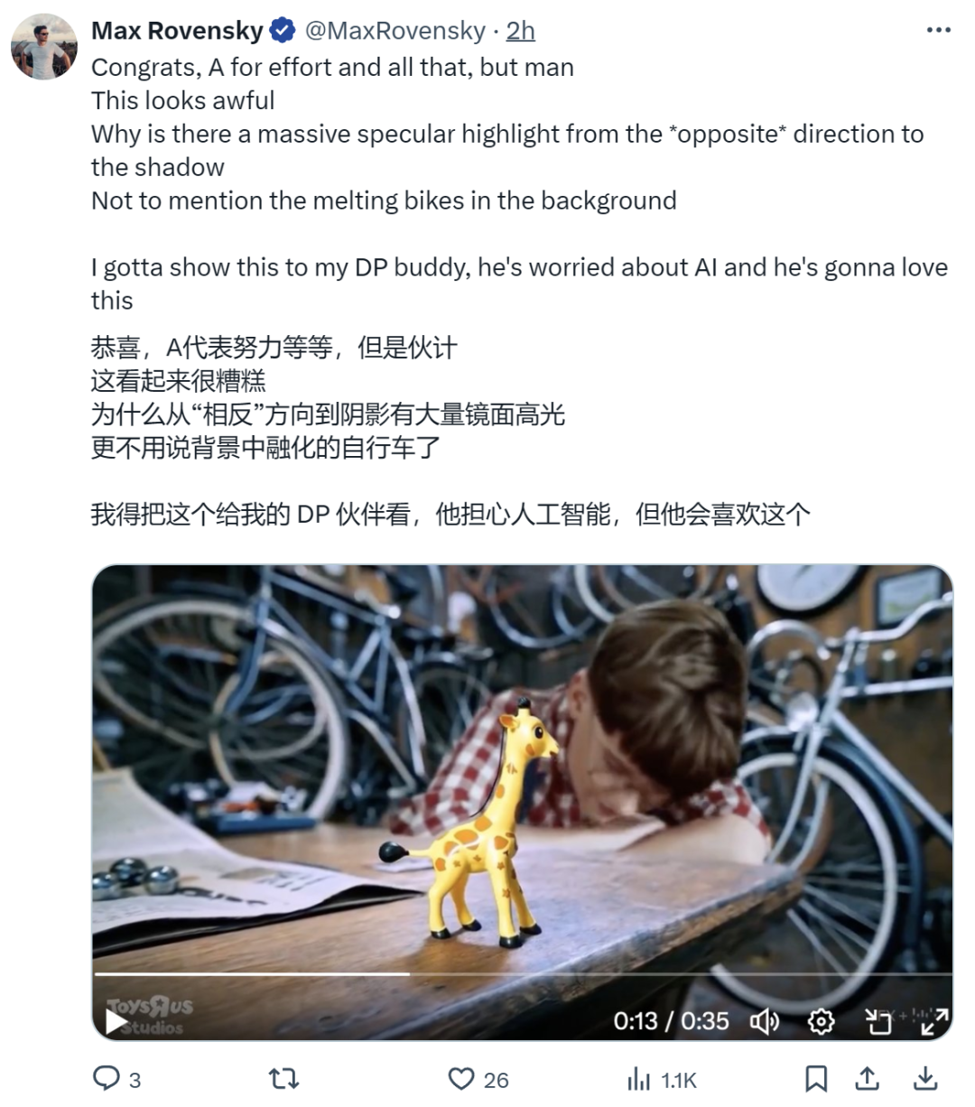 这是之前Sora发布首支短片时,相关后期制作人发现的一个点: