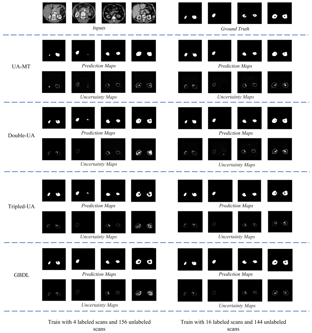 GBDL 用于半监督体积医学图像分割,包括潜在表示学习 (LRL) 架构(绿色虚线框中)和带有 MC dropout 的常规 3D-UNet(红色虚线框中)。测试期间仅使用带有 MC dropout 的常规 3D-UNet。为简单起见,省略了配对 3D-UNet 编码器和解码器之间的快捷连接。