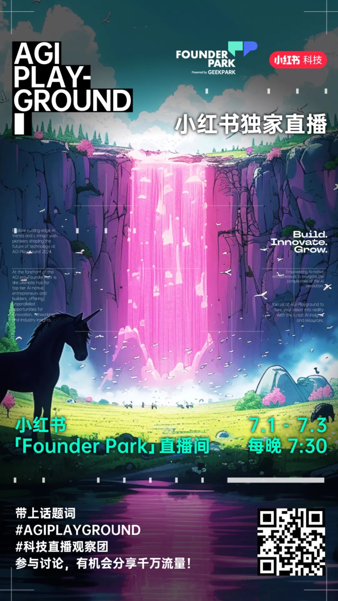 AGI Playground 2024 将于 7 月 1 日 - 3 日每晚 19:30,在「Founder Park」小红书账号独家直播!