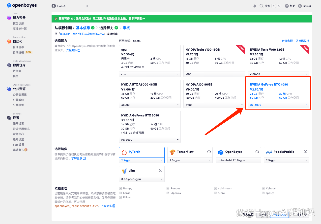 3. 点击右下角「下一步:选择算力」。