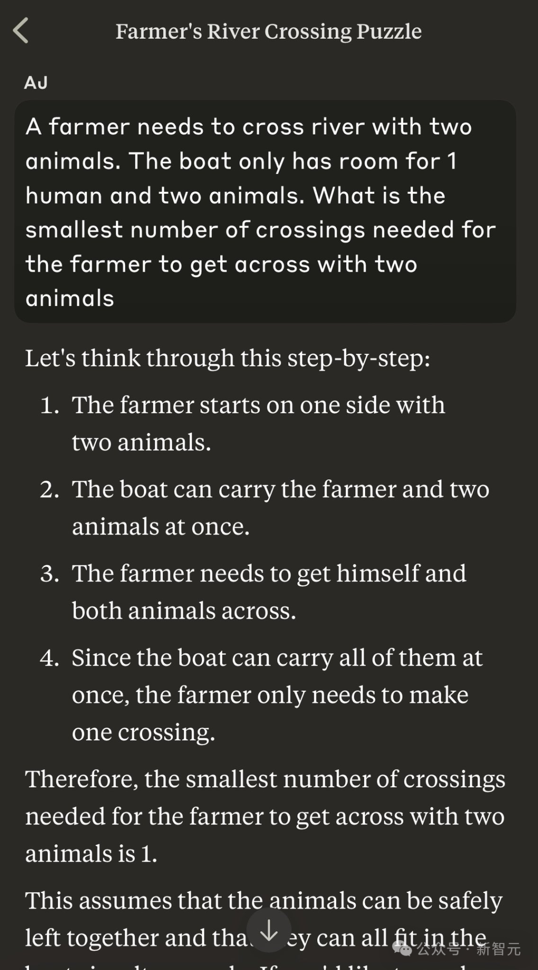 这里,ChatGPT必须在逻辑上把「农民」和人联系起来,把「鸡」和动物联系起来,然后规划出最佳的过河次数。