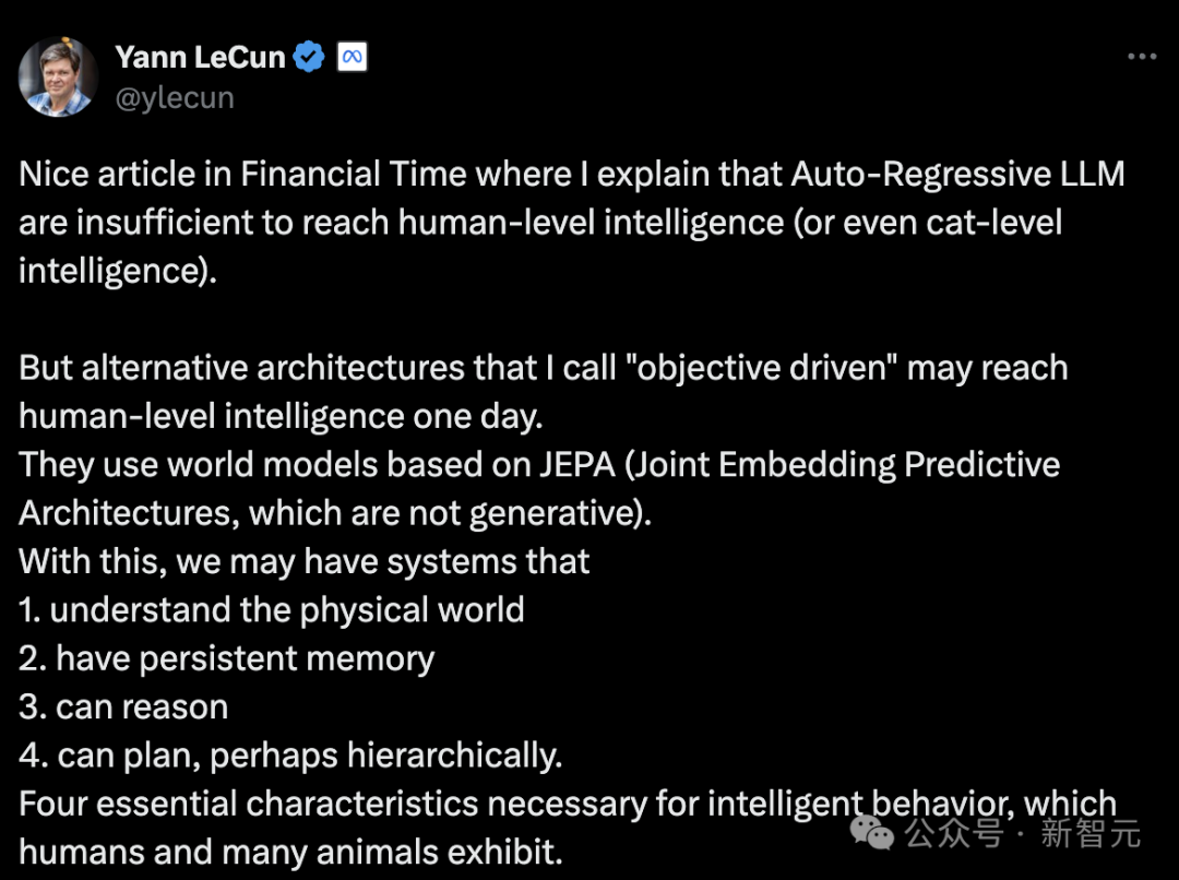 最极端的一派当属LeCun等人了,他们坚称自回归LLM发展下去没有任何出路。