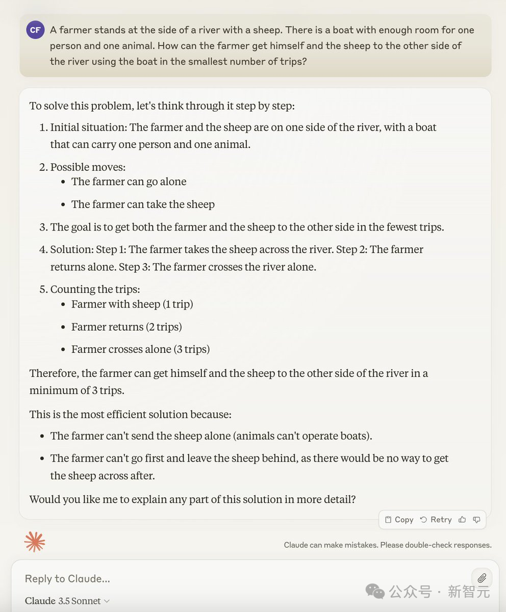 【新智元导读】LLM能否解决「狼-山羊-卷心菜」经典过河难题?最近,菲尔兹奖得主Timothy Gowers分享了实测GPT-4o的过程,模型在最简单的题目上竟然做错了,甚至网友们发现,就连Claude 3.5也无法幸免。