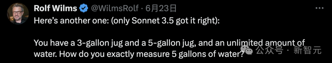 推特网友还发现了另一个绊倒几乎所有LLM的简单问题:(剧透,只有Claude 3.5 Sonnet答对了)