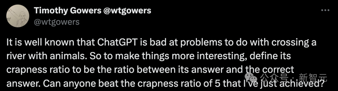 几天前,菲尔兹奖得主、剑桥大学研究主任Timothy Gowers直接拿GPT-4o开刀,去解决动物过河难题。