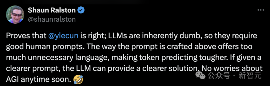 如果给出更清晰的提示,LLM就能提供更清晰的解决方案。所以,不用担心AGI会很快出现。
