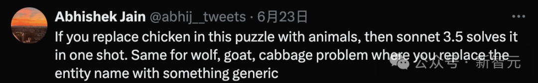 另一位网友同样发现,如果用「动物」代替「鸡」,那么Claude 3.5 Sonnet一下子就解决了这个问题。
