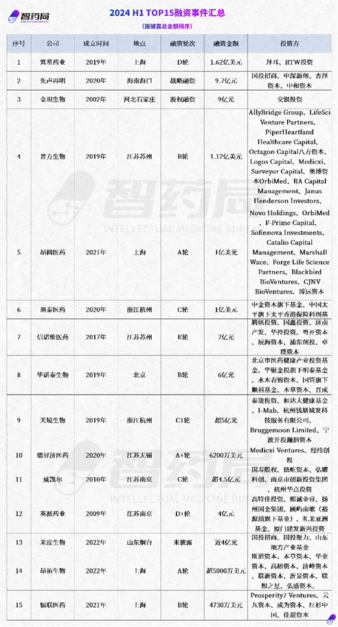 智药局整理了国内创新药市场融资金额TOP15,可以看出寻求美元基金支持,成为热门趋势。