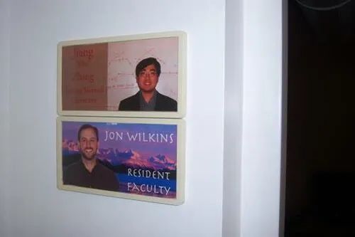 “等会我会把你的照片贴到你办公室的门口,还有技术人员帮你设置好无线网连接,以及打印机。”原来,每间办公室门前都有一张或者两张小卡片,上面印有这间办公室的主人,以及他们的来历、身份,以方便学者们可以根据墙上的卡片找到要交流的对象。每间办公室都会有一到两个学者。
