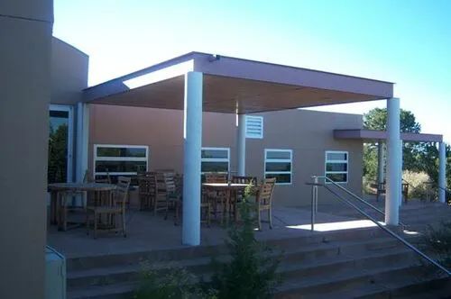 走进大门,还要再徒步走上10分钟,才能看到圣塔菲研究所的主建筑。到达小山的顶端,我不禁惊呆了,这就是著名的圣塔菲研究所吗?怎么没有我熟悉的高楼大厦?反而就是这么一件普普通通的平房?