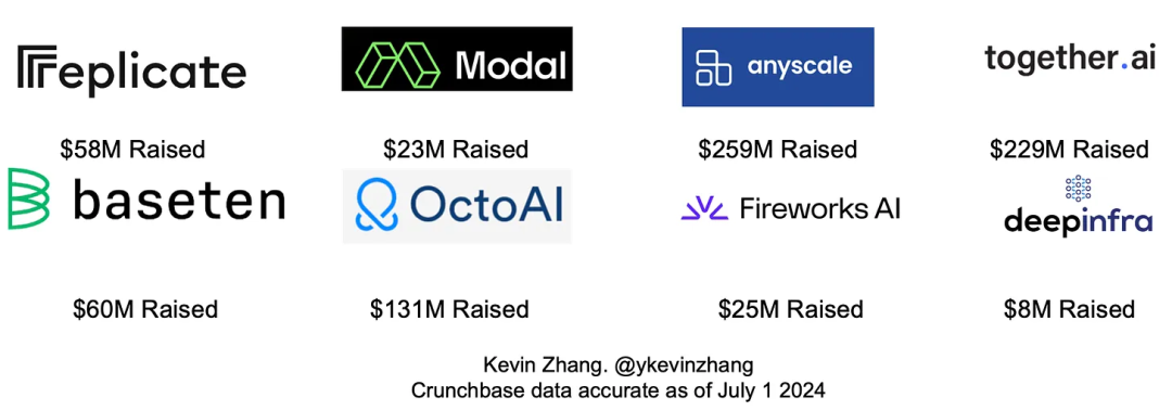 鉴于上述技术十分繁杂,许多初创公司应运而生,他们致力于化繁为简,帮助客户更快地在其产品中集成AI功能(部分相关公司已在下方列出)。我将重点讨论那些专注于推理功能的初创公司,而非提供全套服务(包括推理、训练和微调)的公司。- 顶尖竞争者在价格和性能上十分接近,这表明未来在这些方面难以形成差异化