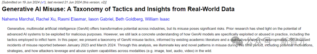 这篇论文由谷歌人工智能研究实验室DeepMind、安全智囊团Jigsaw和慈善机构Google.org的研究人员共同撰写,他们深入调查了关于生成式人工智能的研究报告,以及约200篇关于生成式人工智能滥用的新闻报道,对生成式AI工具被滥用的不同方式进行了分类。