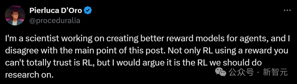 Mila在读博士、Meta研究员Pierluca D'Oro自己就在为agent开发奖励模型,他同意Karpathy「RLHF不是真正的RL」的说法,但并不认为Karpathy预期的那种奖励模型能够实现。