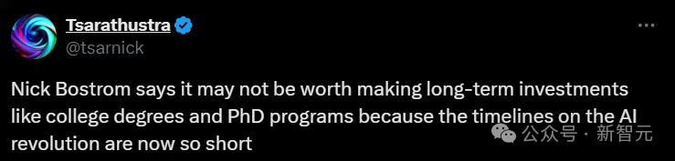 Bostrom:这场AI革命在未来5到10年内可能发生,但我们现在对人力资本长期投资的周期20到30年。这很有可能无法看到回报。因为到那时,AI也许已经在各个领域取代了我们,人力资本因此贬值。这就是未来可能不再存在的一个方面。