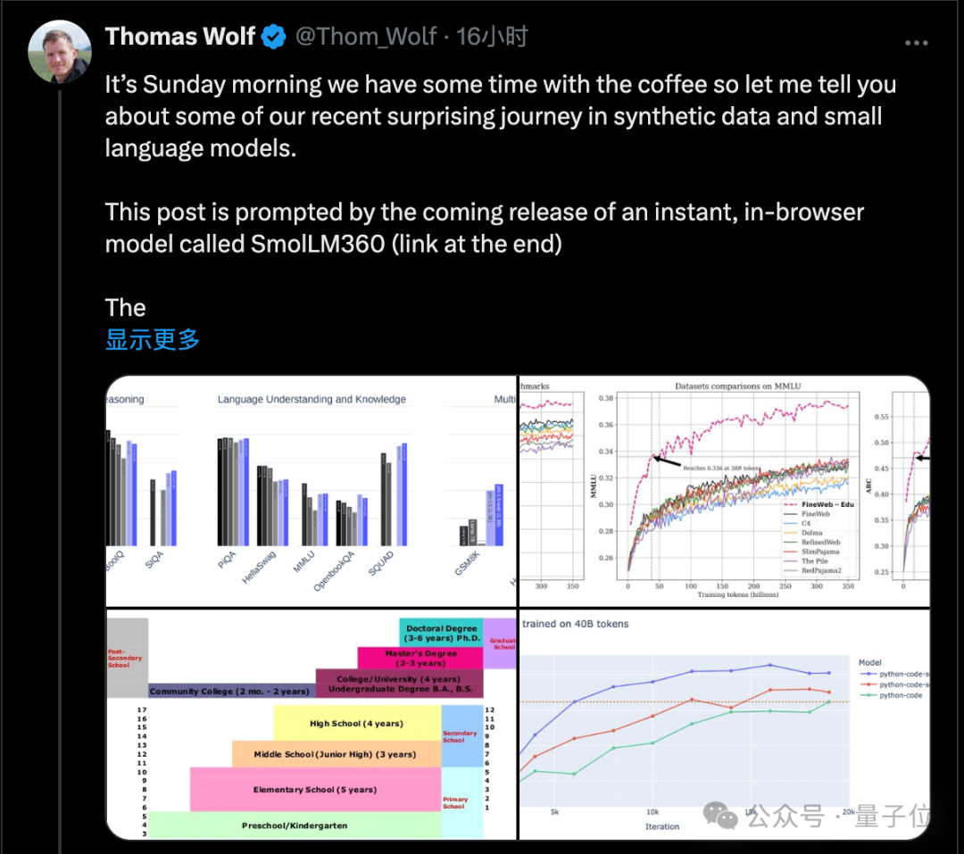 抱抱脸首席科学家Thomas Wolf,总结团队在开发小模型时的经验,抛出新观点,引起业界关注: